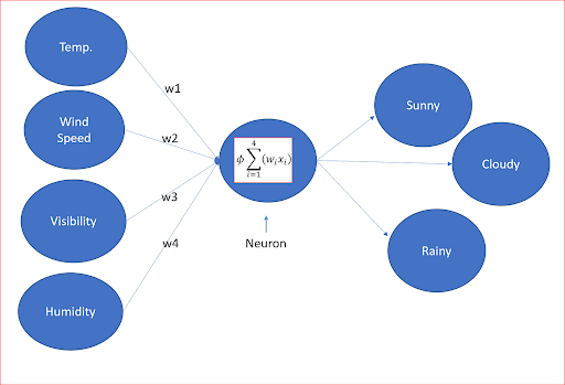A perceptron uses a step function/ sigmoid that returns +1 if weighted sum of its input 0 and -1 otherwise