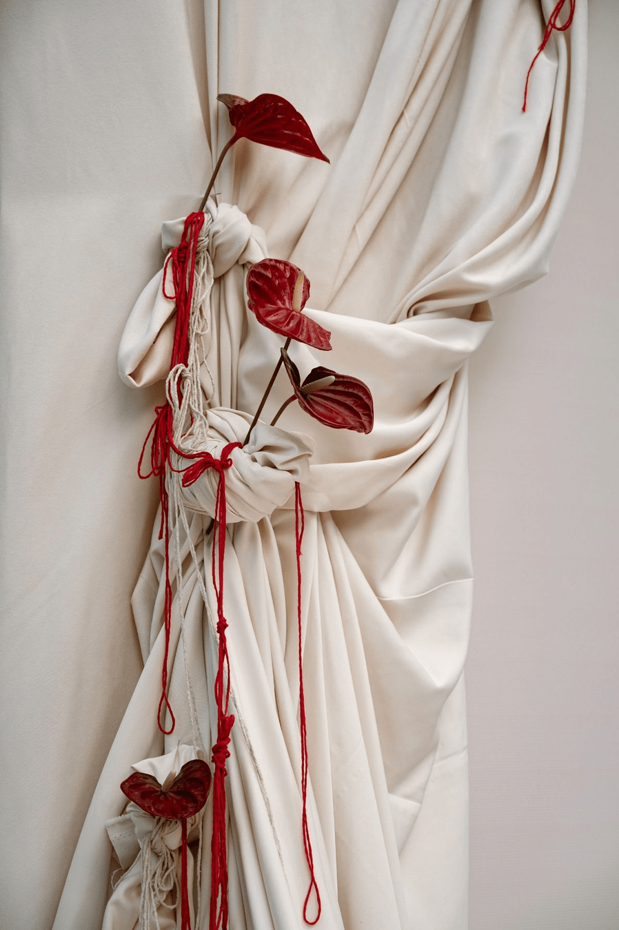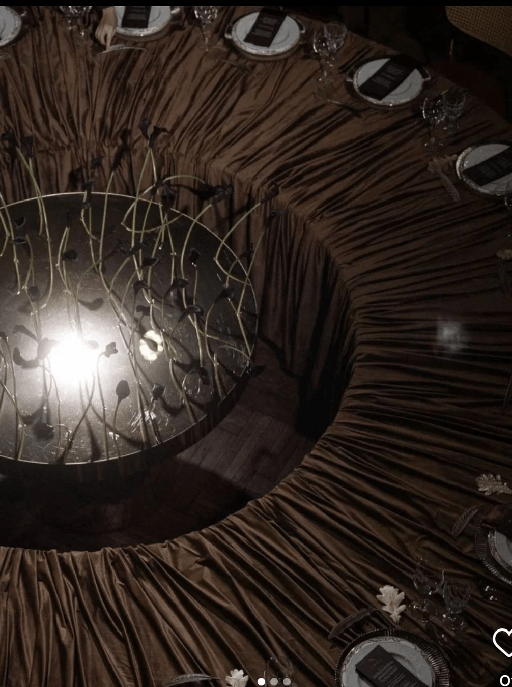 По центру фотозони оксамитова тканина в тон скатертин у залі.