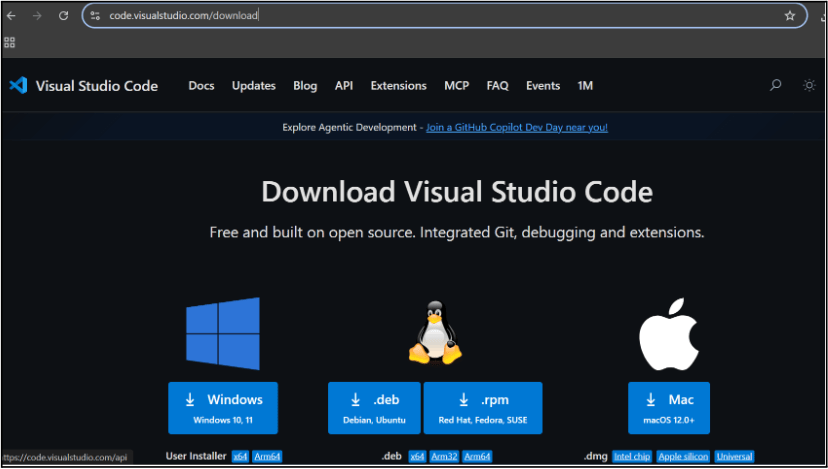 In this step we will install the VS code editor that will help to Write code efficiently,Organize files , Run and test your application