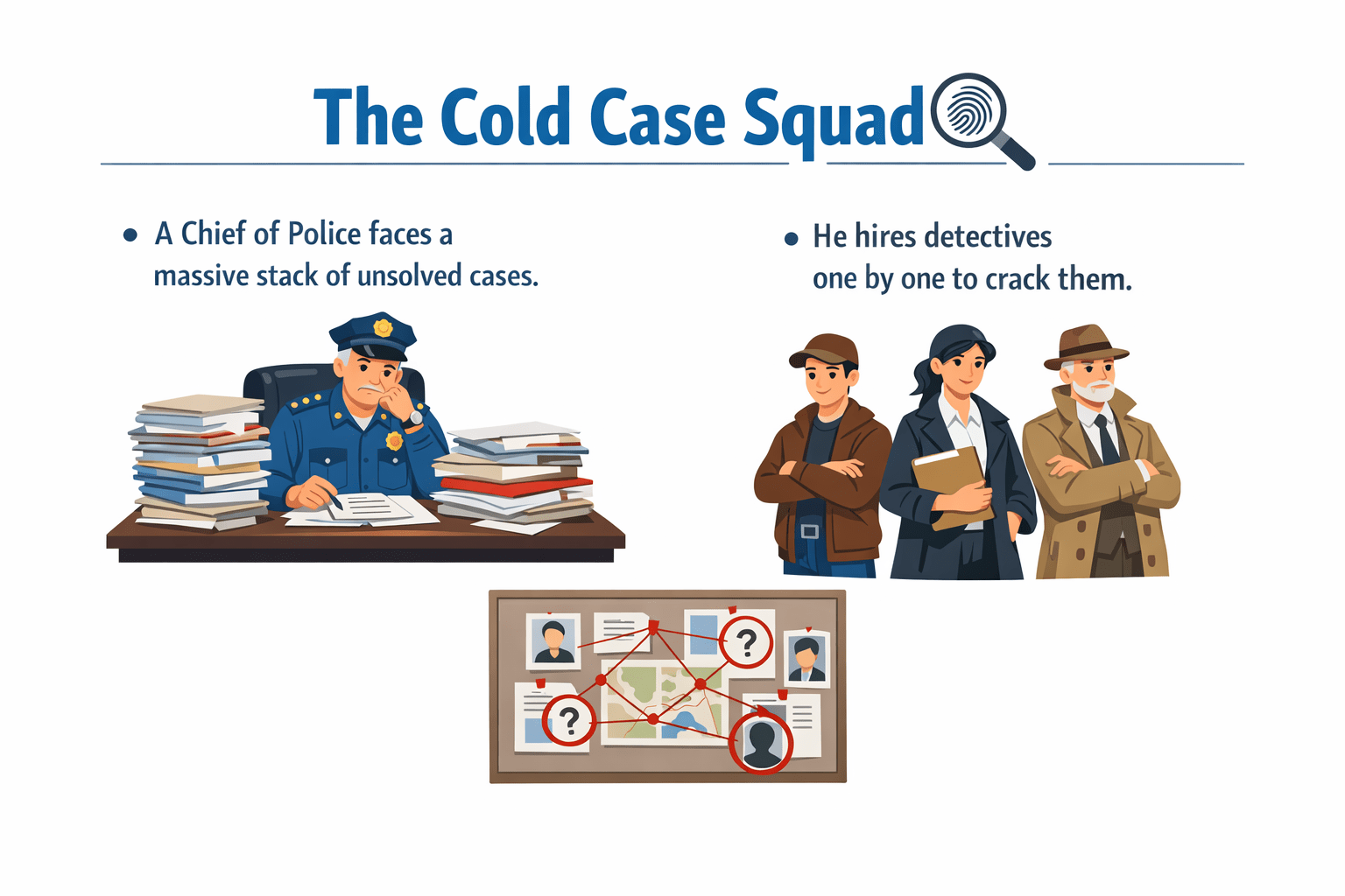 A Chief of Police has a massive stack of unsolved cases.
