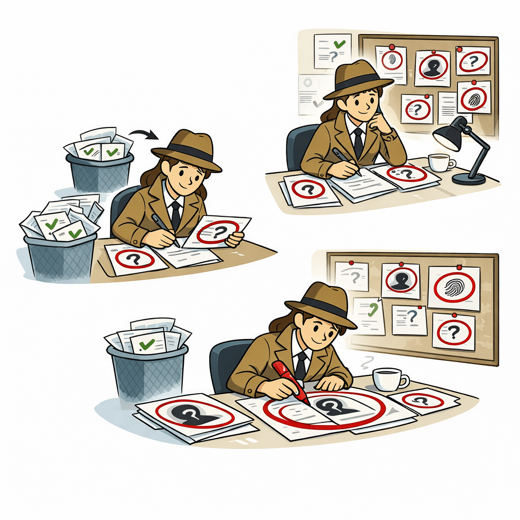 He takes a giant red marker and circles the failed cases.