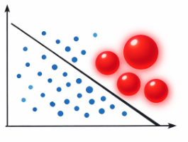 We update the "Sample Weight" (w) of every single data point.