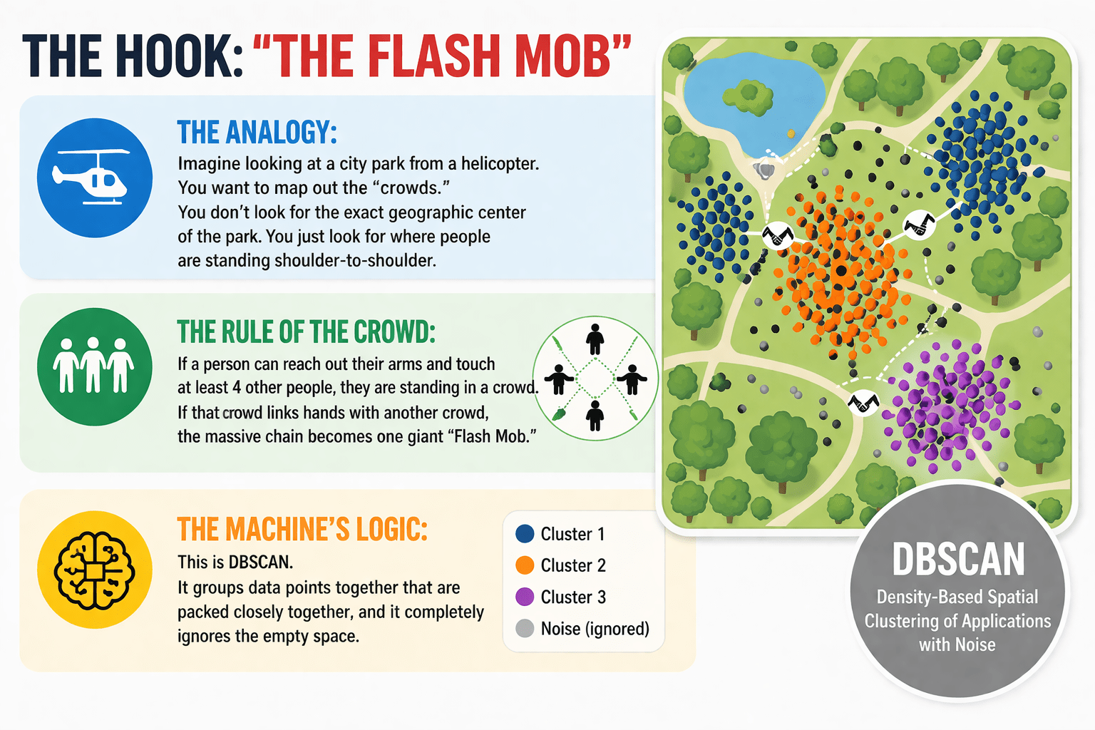 We need an algorithm that doesn't care about "centers" or "shapes." We need one that simply follows the crowd.