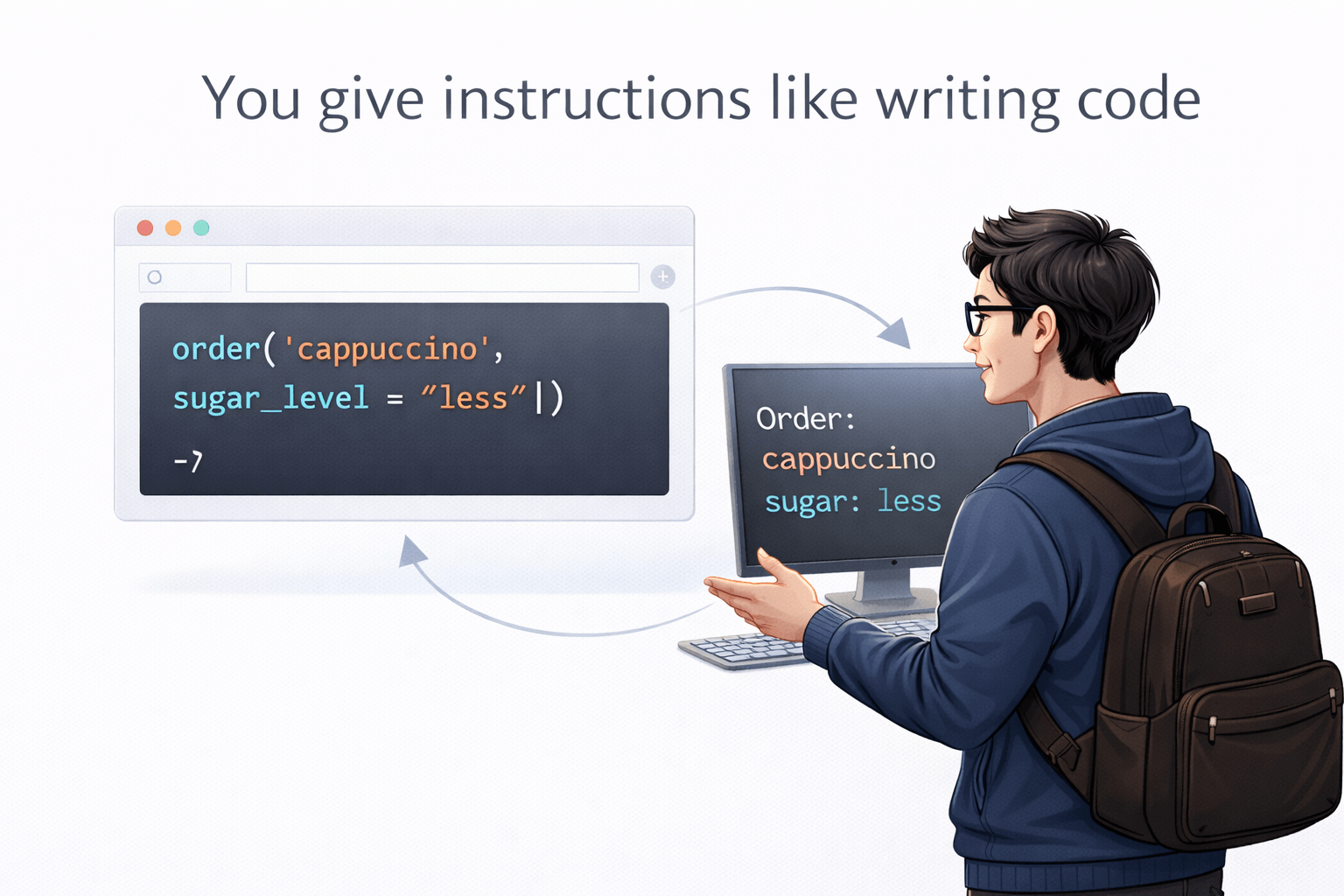 You give instructions like writing code