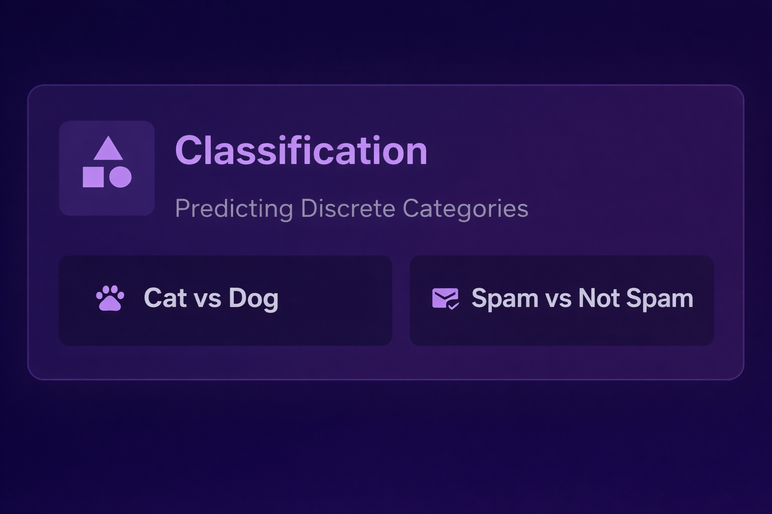 Distinguish between Regression (predicting numbers) and Classification (predicting categories).