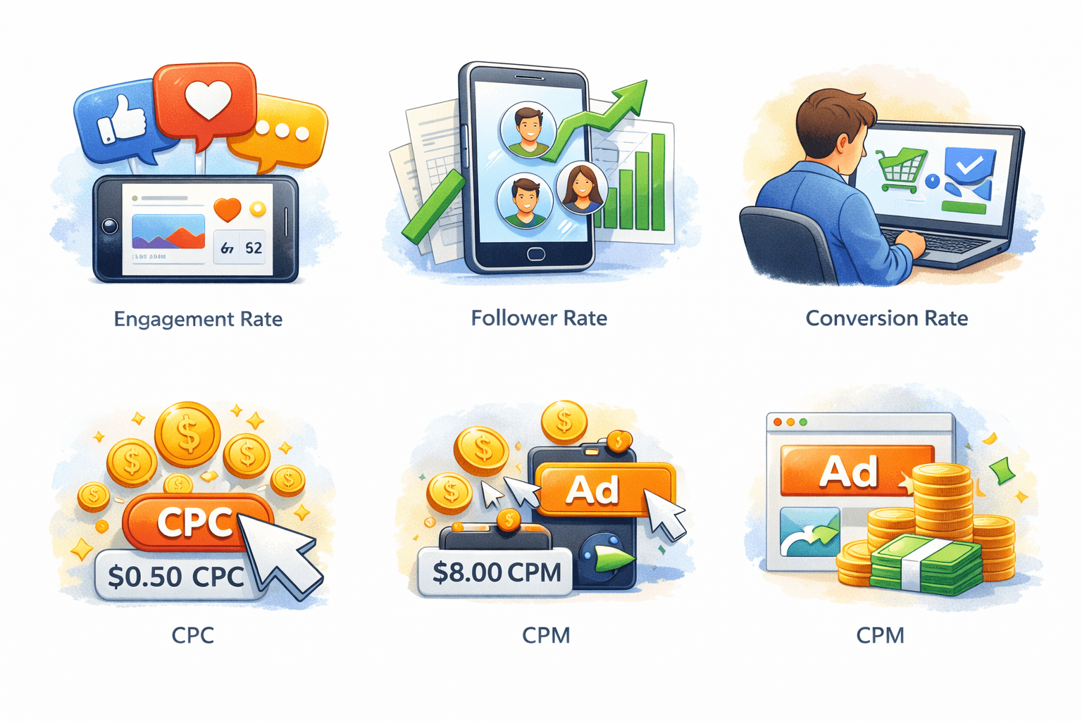 Shows the cost paid for each click (Cost Per Click)