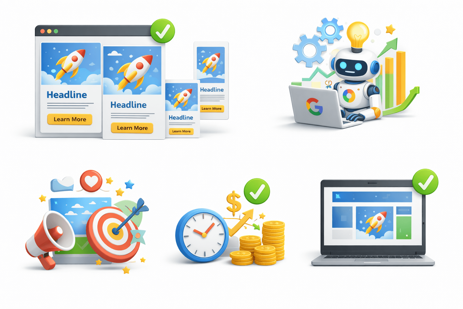 Responsive Display Ads work the same way—you provide assets (images, headlines, descriptions), and Google’s AI automatically creates the best-fitting ad for each user, device, and placement.