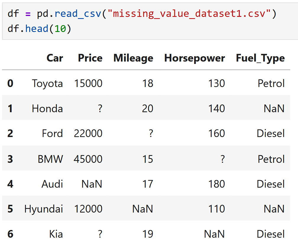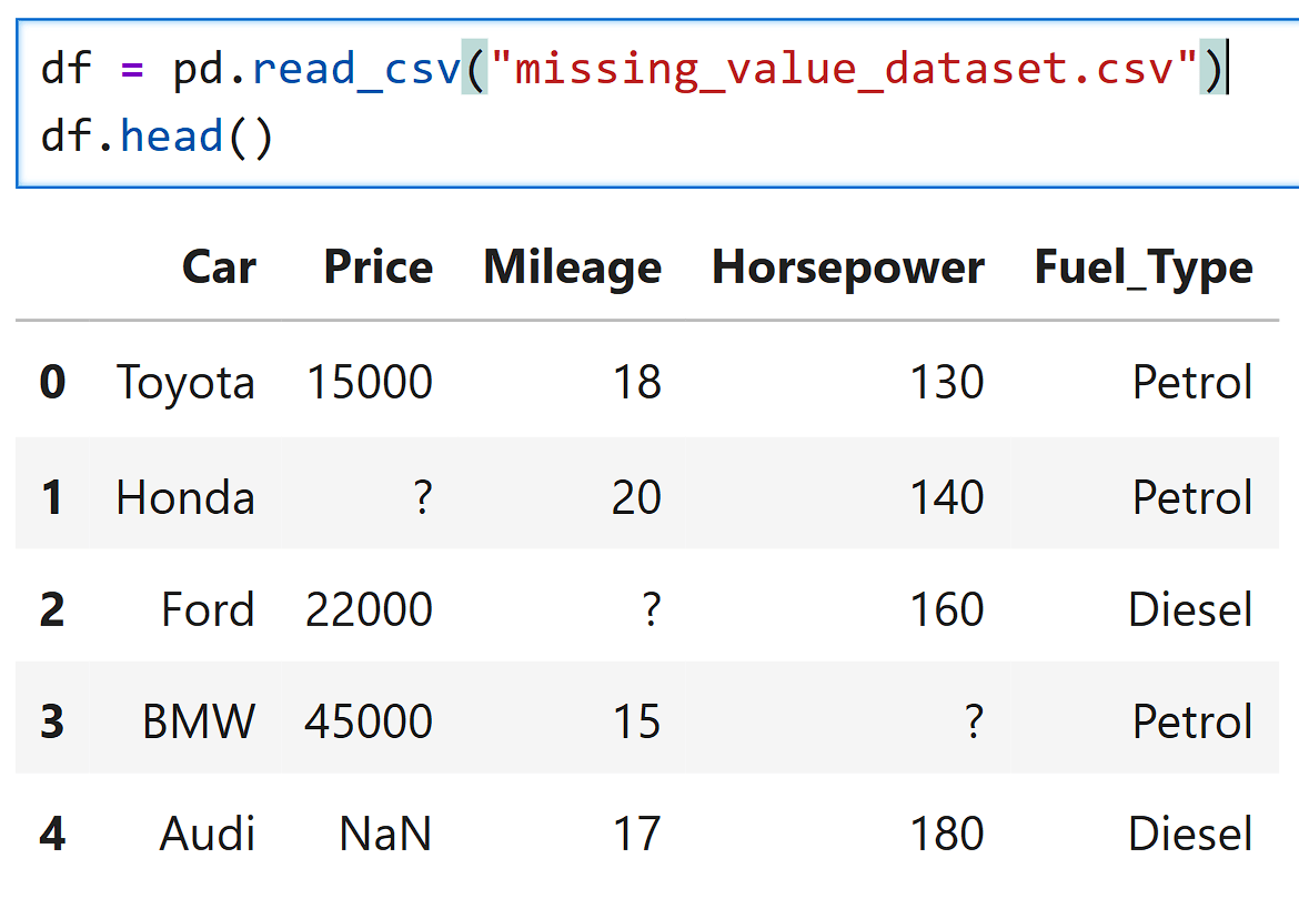 In the file "missing_value_dataset.csv ", the missing values are written as :