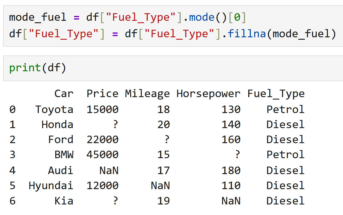 Apply Mode Imputation for categorical variables (e.g., num-of-doors).