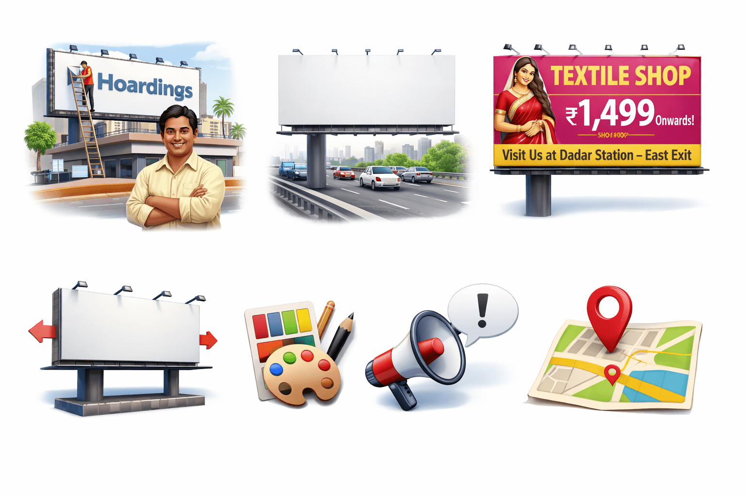 The next year, the same shop returned with a better banner — bright colors, an attractive saree image, pricing (₹1,499 onwards), and a clear message: “Visit Us at Dadar Station – East Exit.”
