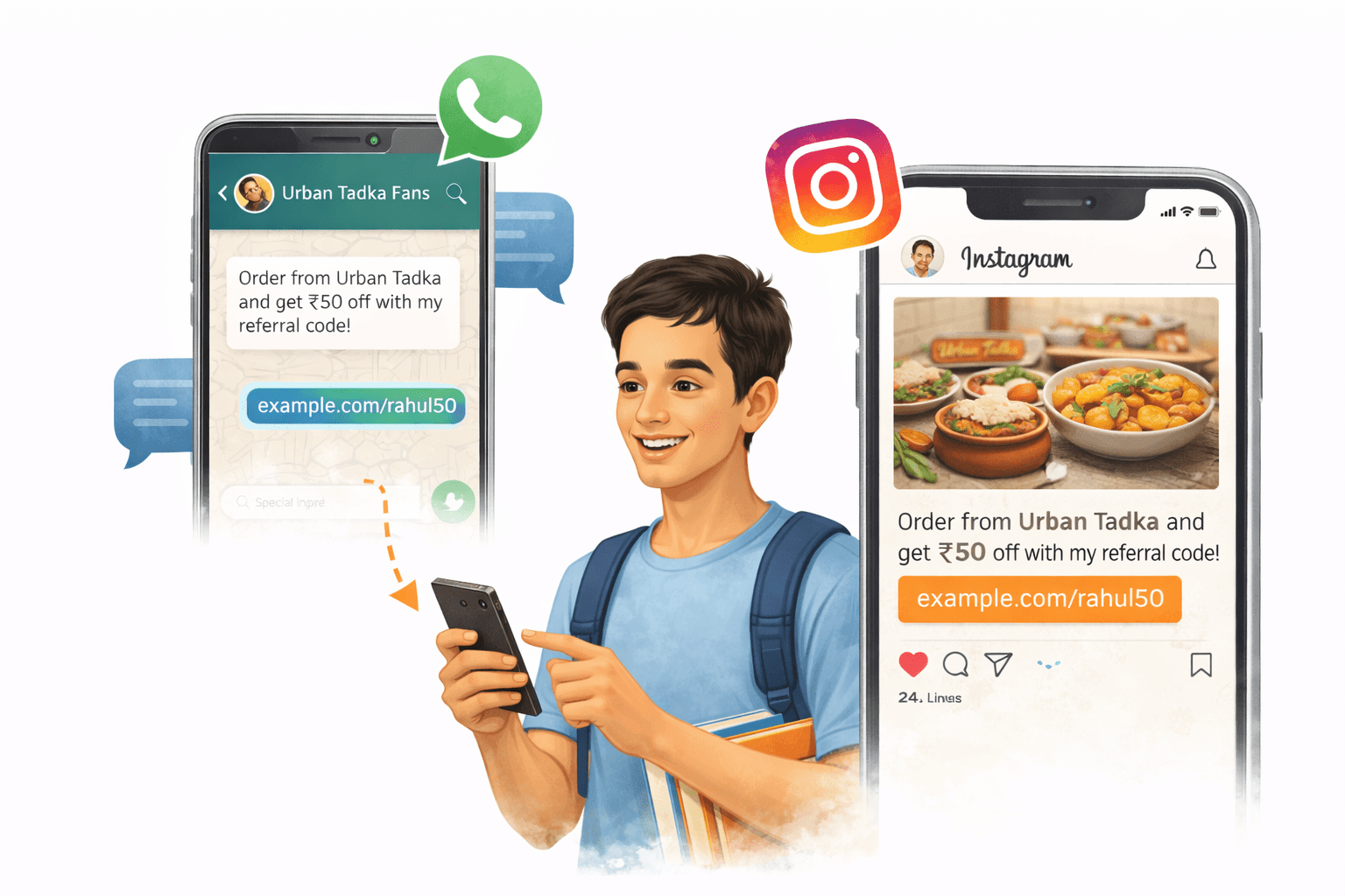 Rahul shares his special link/code in his WhatsApp groups and Instagram.