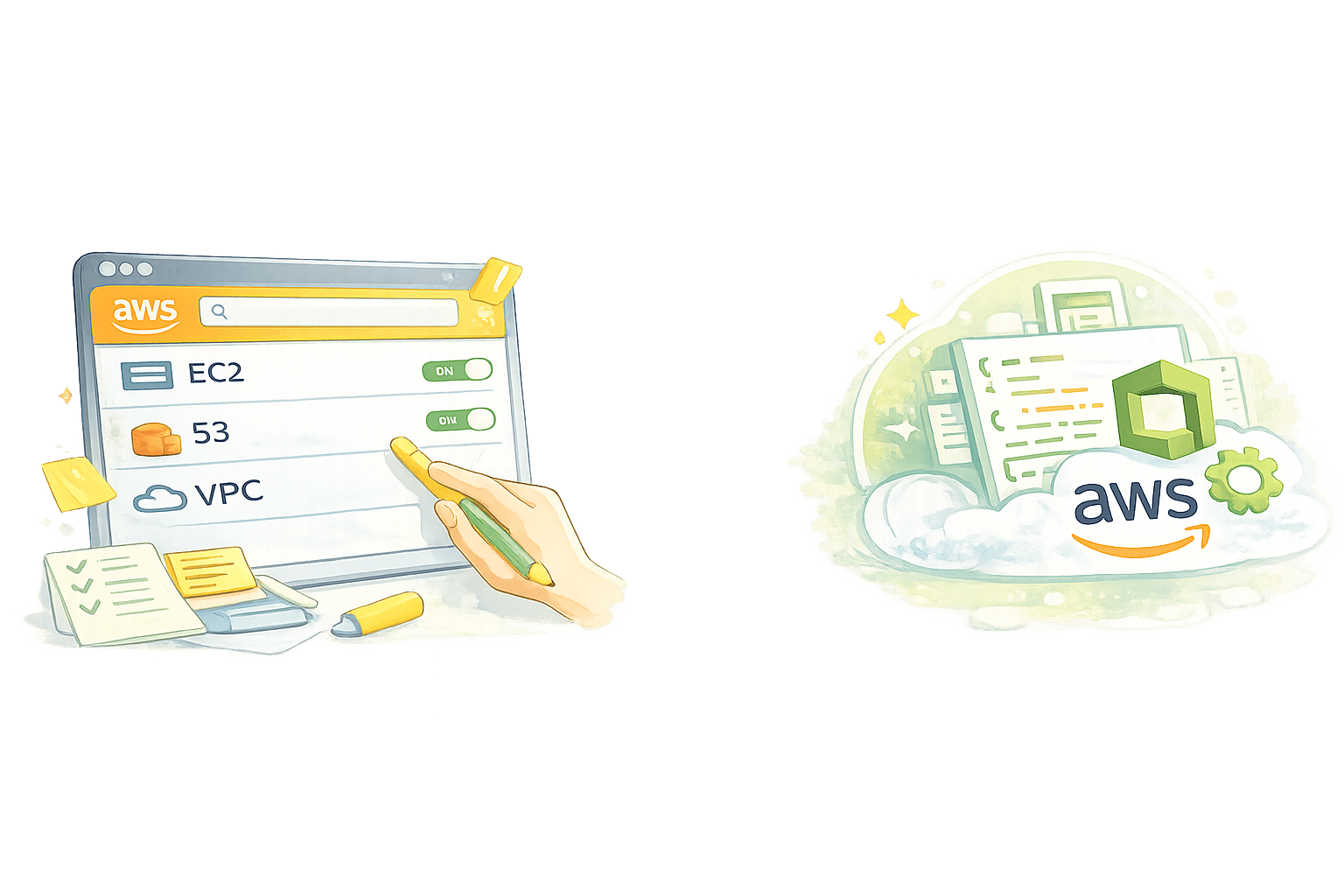 Instead of creating resources manually in the AWS console,