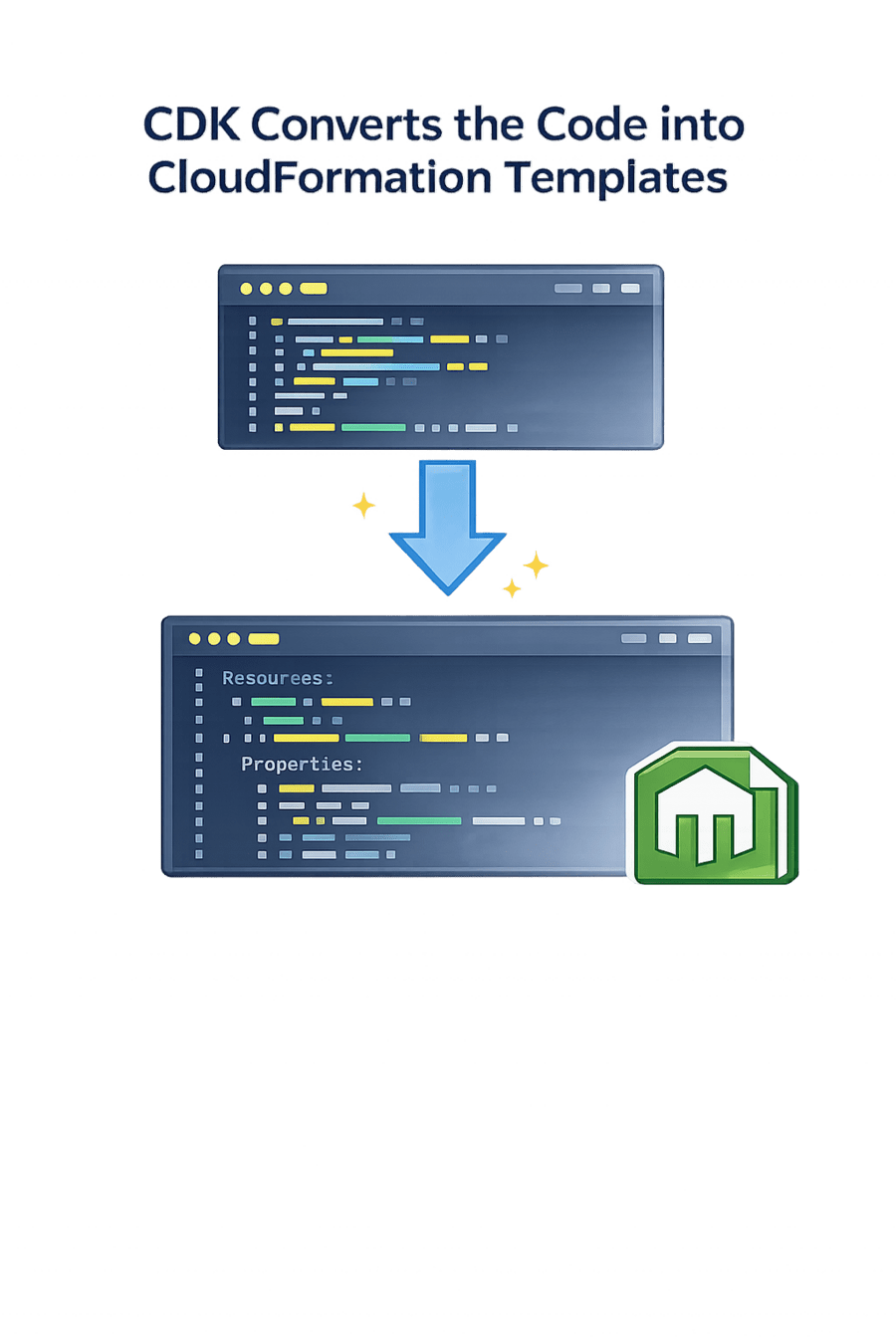 The CDK code is automatically converted into CloudFormation templates