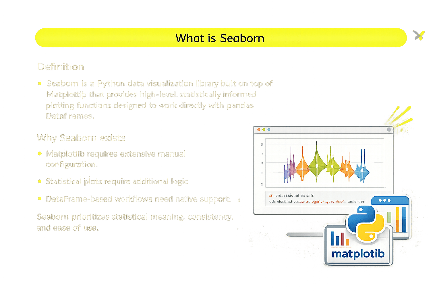 Seaborn is a Python visualization library built on Matplotlib that offers high-level, statistically informed plots for pandas DataFrames.