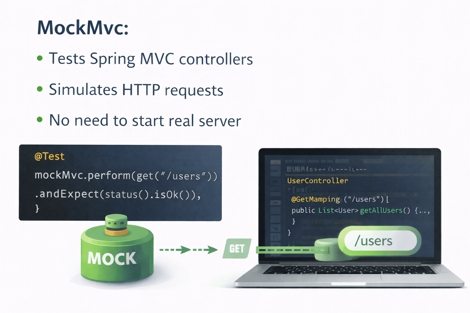 @MockBean helps isolate dependencies , MockMvc tests REST controllers efficiently