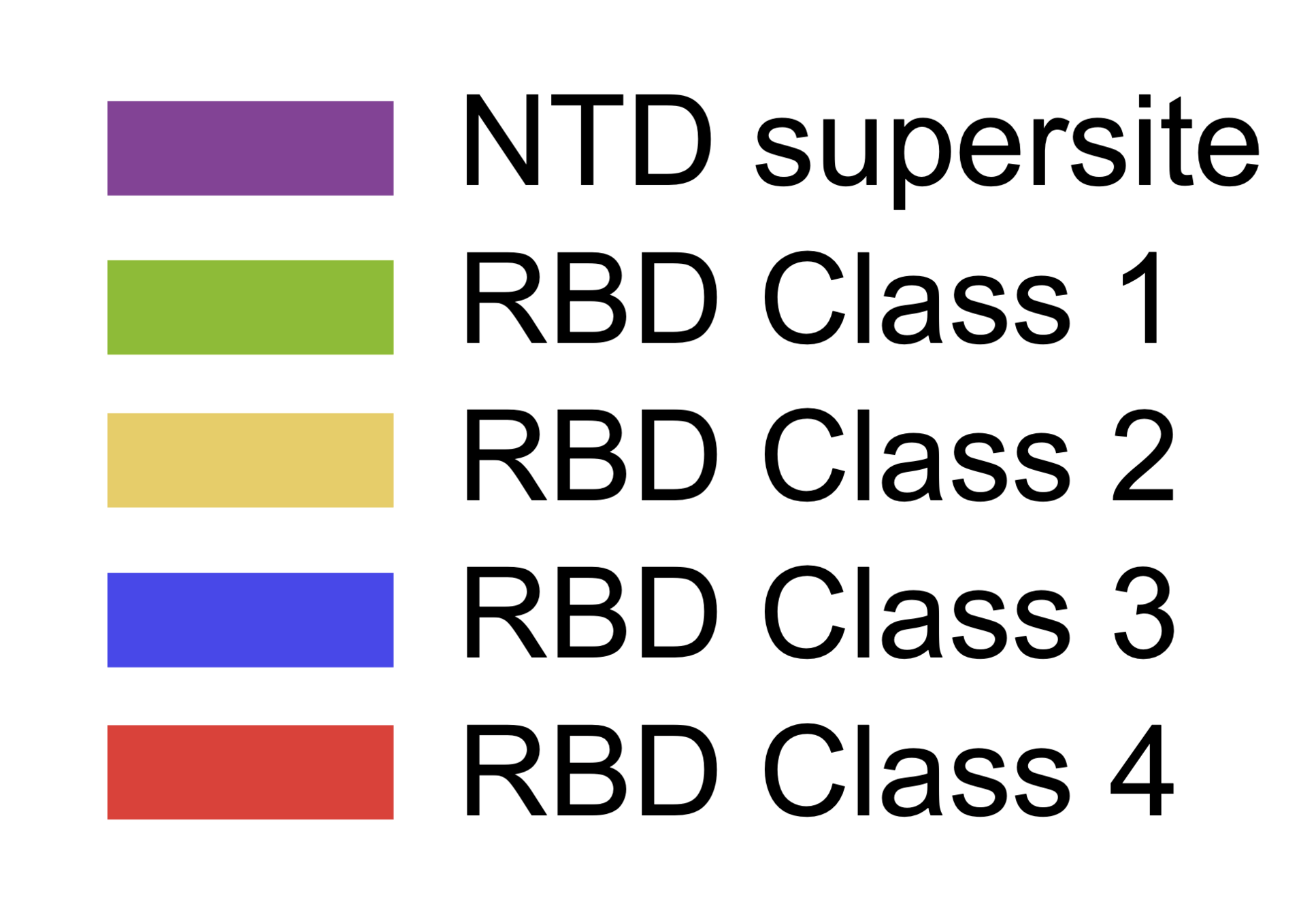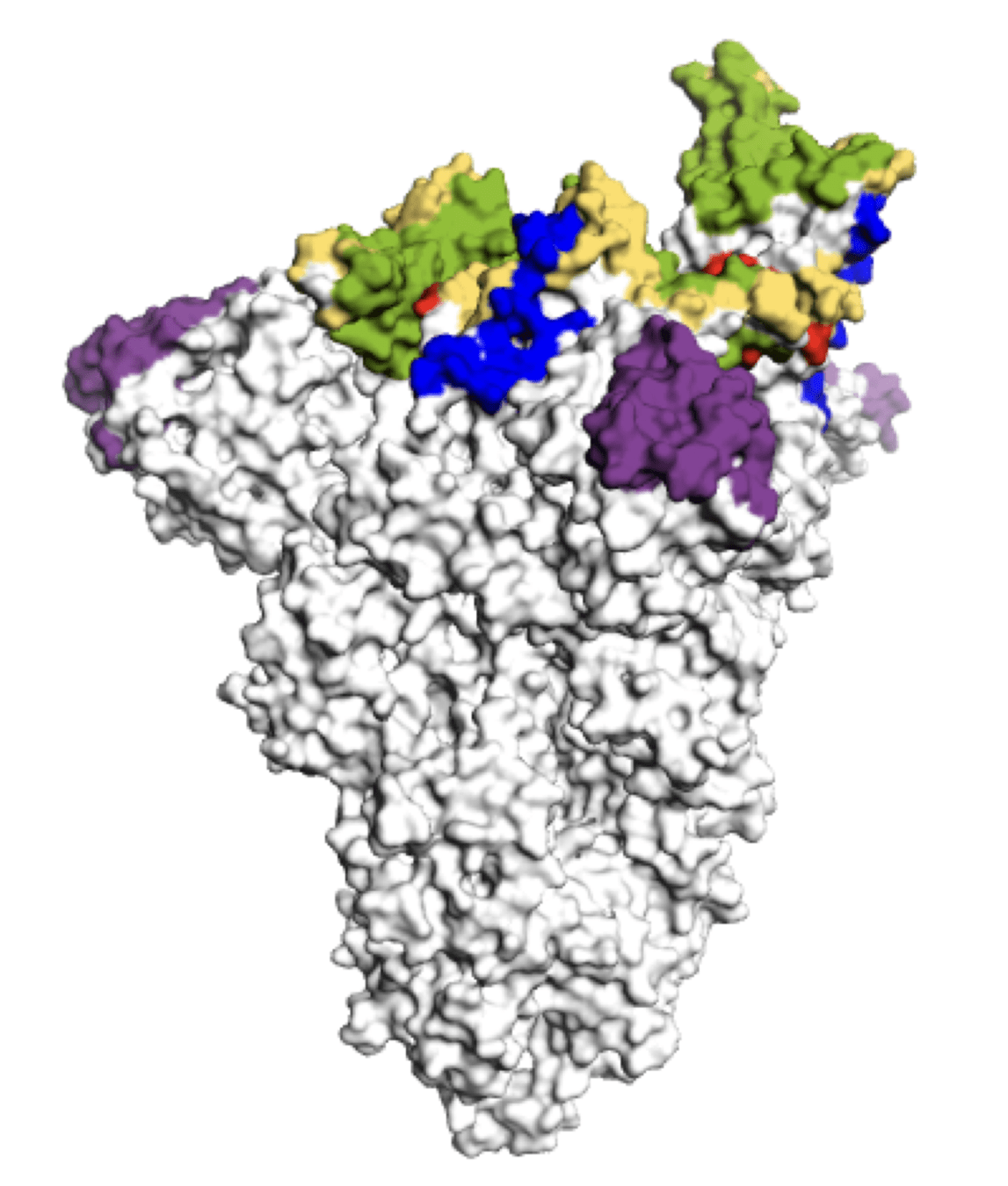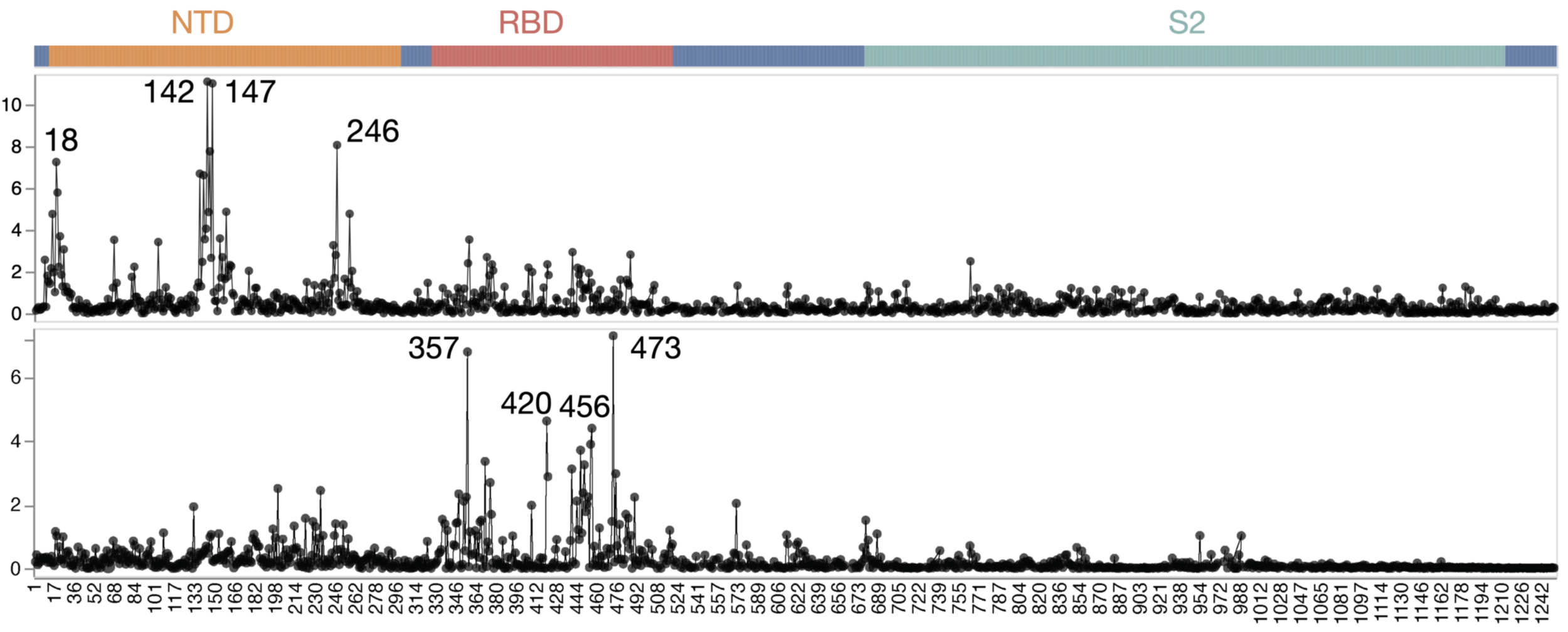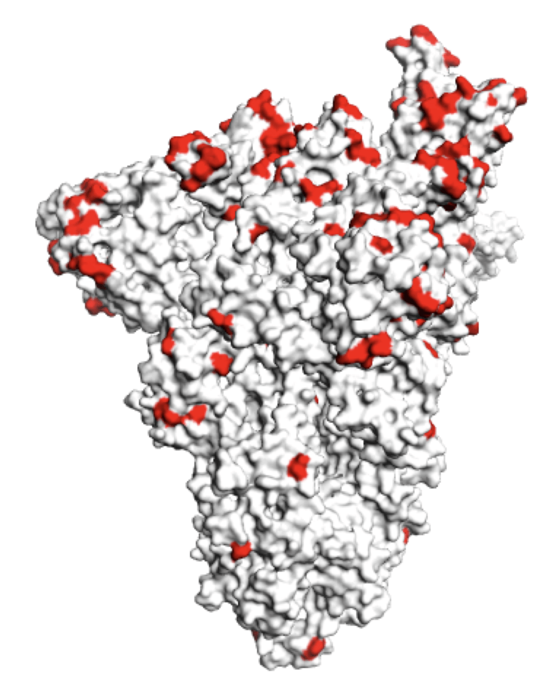 Sites of mutations in recent (BA.2.86) SARS-CoV-2 strain relative to early 2020 strain