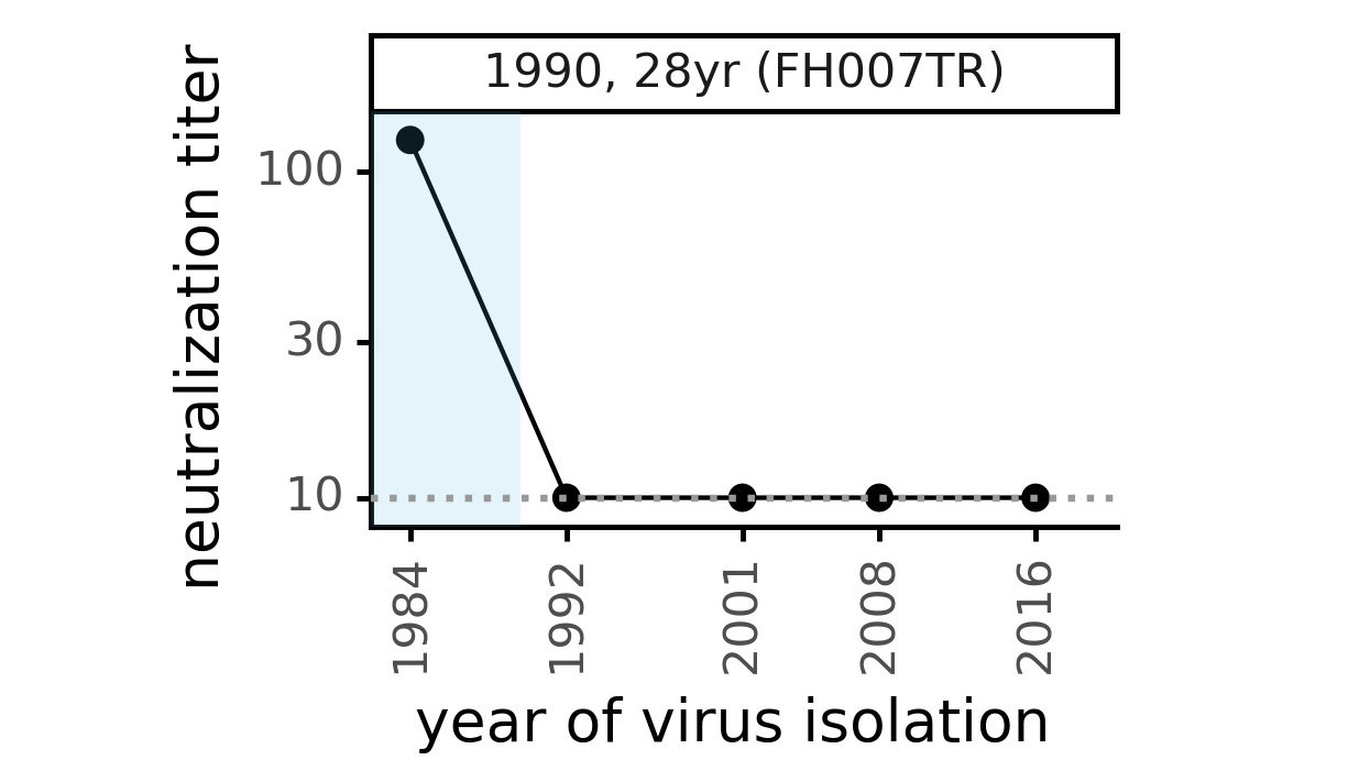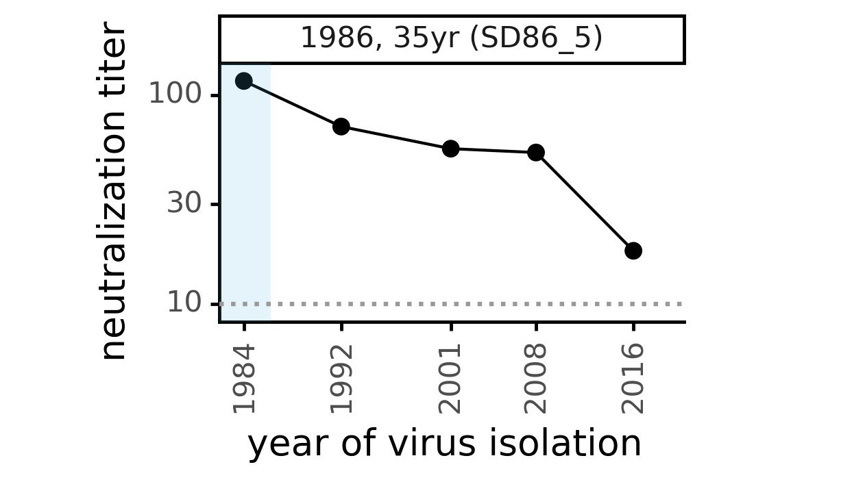 Serum collected in 1985 neutralizes virus with spike from 1984, but less effective against more recent viruses.