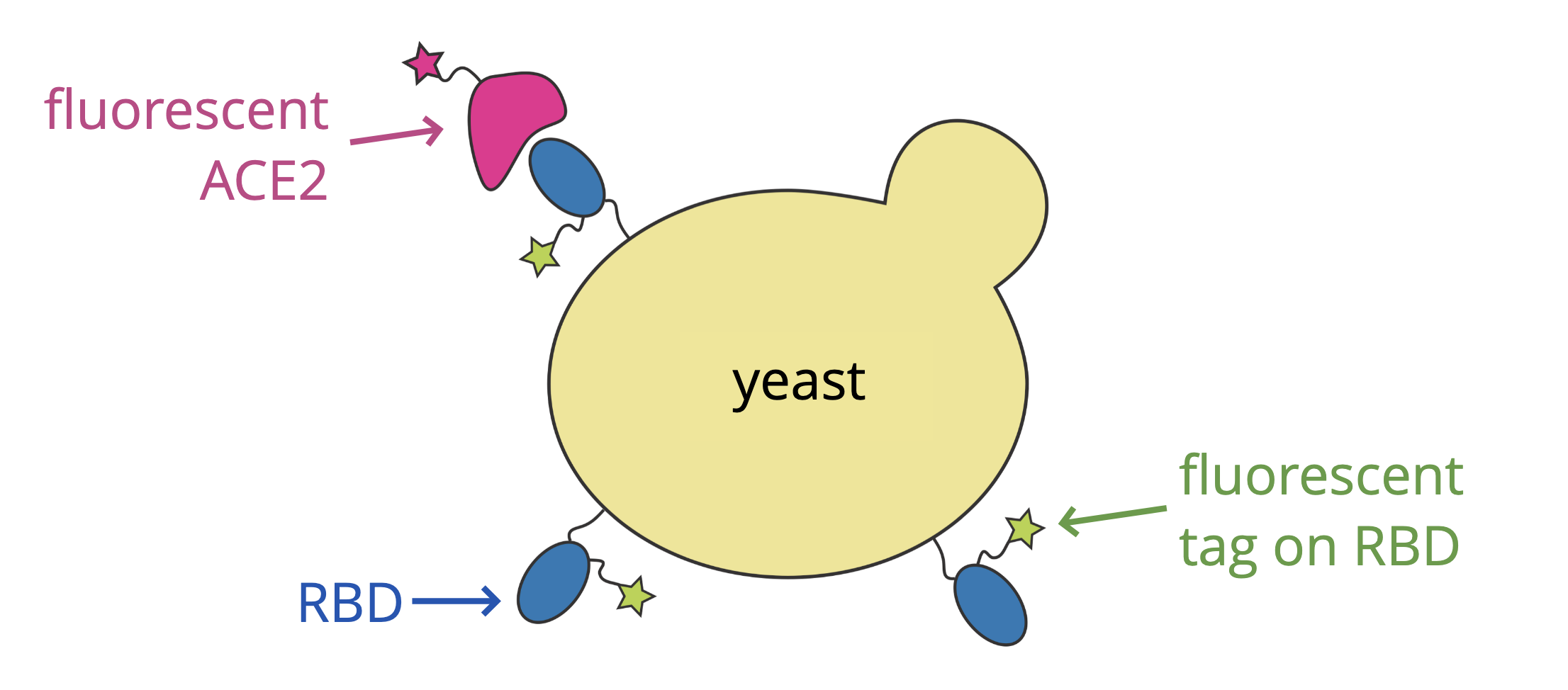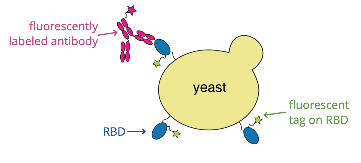 For these studies, we displayed the RBD on the surface of yeast, so we could measure how mutations affects its affinity for ACE2 or ability to escape antibody binding.