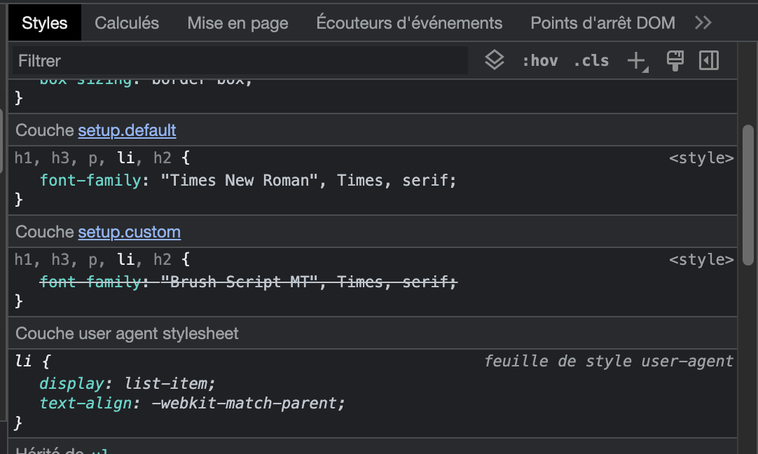 - Priorités de style claires
