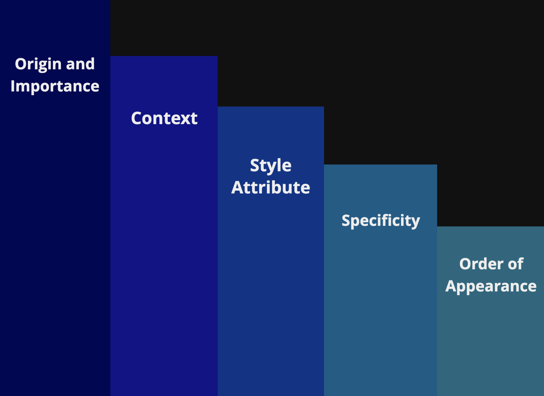 Specificity and Order of Appearance still are important, but only inside one and the same Layer.