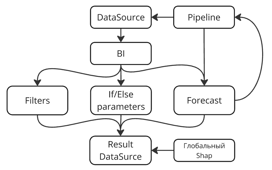На вход данные после фильтра/выч. параметра с прогнозированием метрики