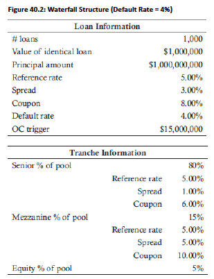 - Senior tranche: 80% ($800M), spread = 1%, coupon = market rate + 1%