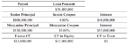 - Senior Tranche Priority: Sum of terminal cash flows is first compared to the amount due to senior tranche; if sufficient, senior tranche is paid off and remainder flows down the capital structure