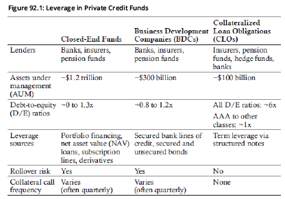 - Insufficient data available to accurately determine leverage levels employed in private credit markets