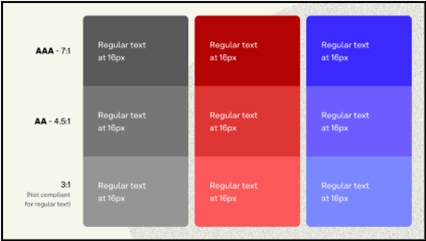 - Contraste au minimum de 3:1 pour les couleurs de textes et d'arrière-plans