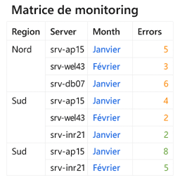 | Simple | Vue claire d'une mesure par catégorie | Erreurs par serveur |