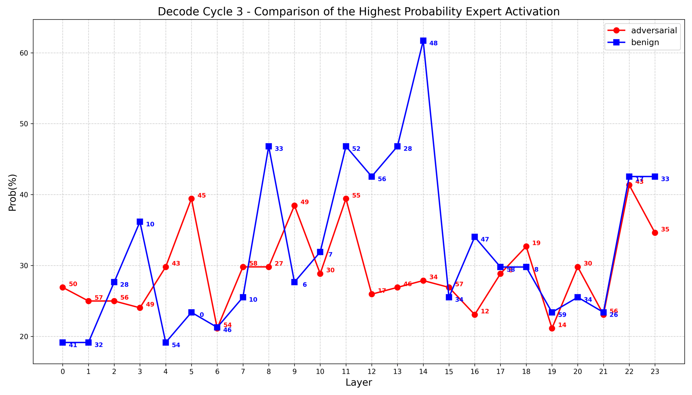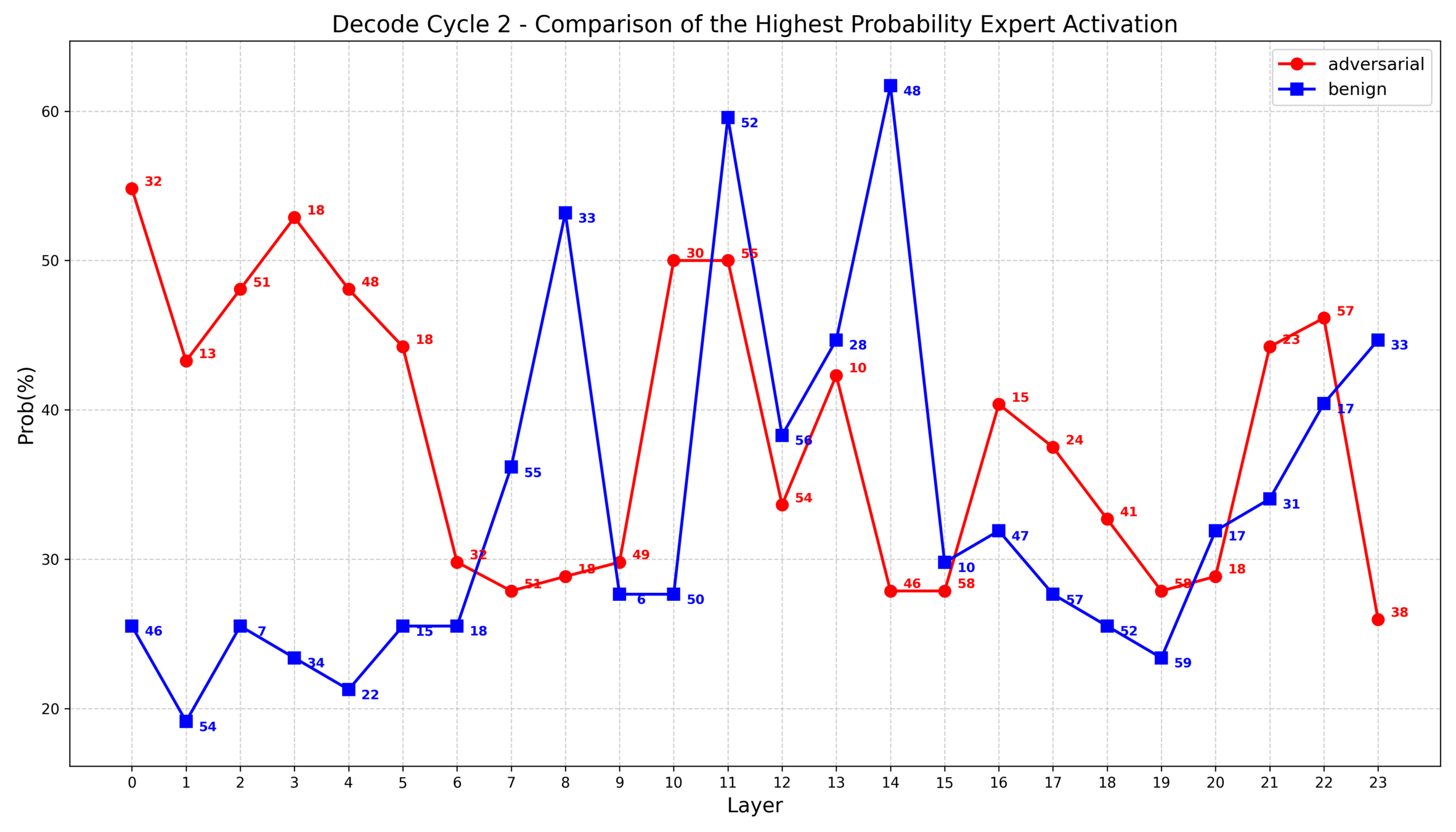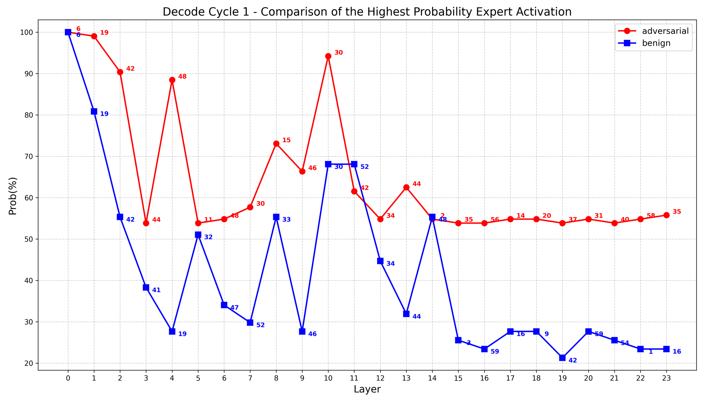 2. 根据之前的实验发现,部分层中对抗样本的专家选择集中度大致比良性样本高10%~20%,因此我思考是否可以把这些具有统计差异的层重点表示出来